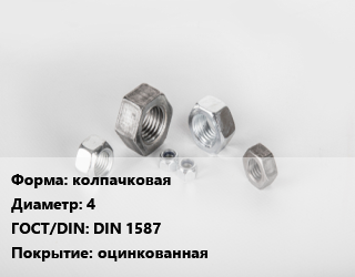 Гайка колпачковая D=4 DIN 1587 оцинкованная, упаковка 100 шт, Китай цена от 72.48 ₽ / кг, где купить, условия доставки в Ярославле и Ярославской области