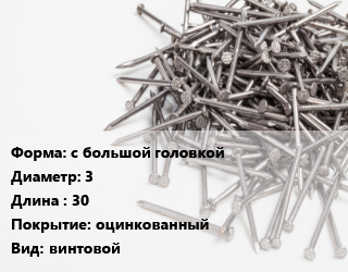 Гвоздь с большой головкой 3х30 оцинкованный винтовой