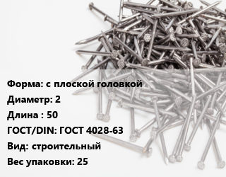 Гвоздь с плоской головкой 2х50 ГОСТ: ГОСТ 4028-63 строительный 25