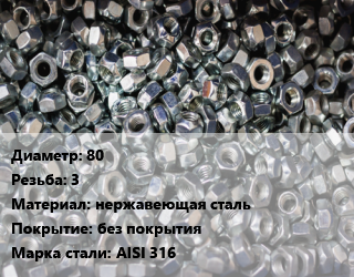 Контргайка 80 3 нержавеющая сталь без покрытия Сталь: AISI 316