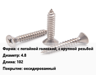 Саморез с потайной головкой, с крупной резьбой D=4.8 L=102 оксидированный, кг, Китай,Россия цена от 101.59 ₽ / кг, где купить, условия доставки в Ярославле и Ярославской области