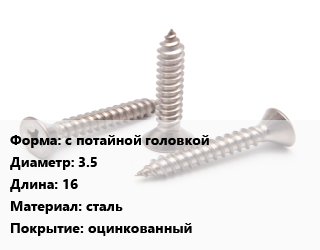 Саморез с потайной головкой D=3.5 L=16 сталь оцинкованный, шт цена По запросу где купить, условия доставки в Ярославле и Ярославской области