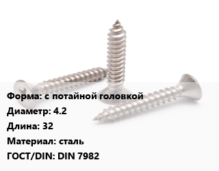 Саморез с потайной головкой D=4.2 L=32 сталь ГОСТ: DIN 7982