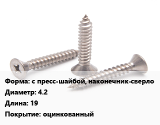 Саморез с пресс-шайбой, наконечник-сверло D=4.2 L=19 оцинкованный