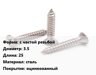 Саморез с частой резьбой D=3.5 L=25 сталь оцинкованный