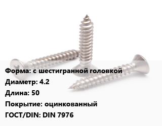 Саморез с шестигранной головкой D=4.2 L=50 оцинкованный ГОСТ: DIN 7976