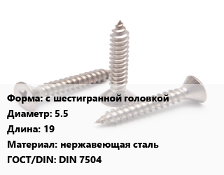 Саморез с шестигранной головкой D=5.5 L=19 нержавеющая сталь ГОСТ: DIN 7504