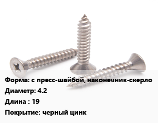 Саморез с пресс-шайбой, наконечник-сверло D=4.2 L=19 черный цинк, упаковка 1000 шт цена от 422.34 ₽ / кг, где купить, условия доставки в Ярославле и Ярославской области