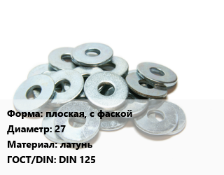 Шайба плоская, с фаской D=27 латунь ГОСТ: DIN 125, упаковка 50 шт цена от 324 ₽ / кг, где купить, условия доставки в Ярославле и Ярославской области