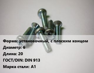 Винт установочный, с плоским концом 6х20 DIN 913 Сталь: А1