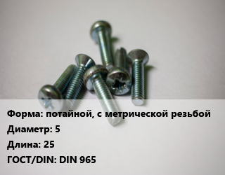 Винт потайной, с метрической резьбой 5х25 DIN 965