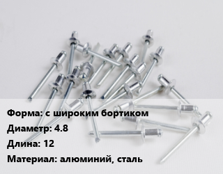 Заклепка с широким бортиком 4.8х12 алюминий, сталь, шт, вытяжная цена от 7.62 ₽ / шт, где купить, условия доставки в Ярославле и Ярославской области