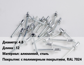 Заклепка 4.8х12 алюминий, сталь с полимерным покрытием, RAL 7024, шт цена от 2.21 ₽ / шт, где купить, условия доставки в Ярославле и Ярославской области