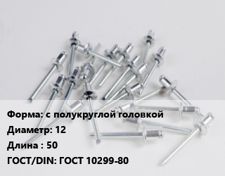 Заклепка с полукруглой головкой 12х50 ГОСТ: ГОСТ 10299-80