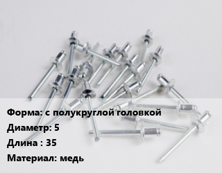 Заклепка с полукруглой головкой 5х35 медь, упаковка 100 шт цена от 173.36 ₽ / шт, где купить, условия доставки в Ярославле и Ярославской области