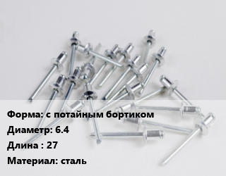 Заклепка с потайным бортиком 6.4х27 сталь