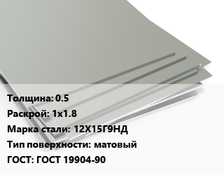 Лист нержавеющий 0.5 1х1.8 Сталь: 12Х15Г9НД Тип:матовый ГОСТ 19904-90