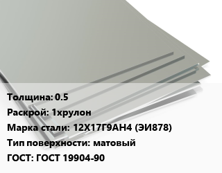 Лист нержавеющий 0.5 1хрулон Сталь: 12Х17Г9АН4 (ЭИ878) Тип:матовый ГОСТ 19904-90