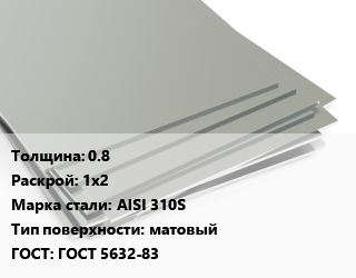 Лист нержавеющий 0.8 1х2 Сталь: AISI 310S Тип:матовый ГОСТ 5632-83, х/к цена от 735 283 ₽ / т, где купить, условия доставки в Ярославле и Ярославской области