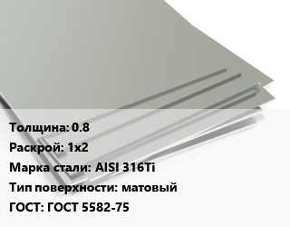 Лист нержавеющий 0.8 1х2 Сталь: AISI 316Ti Тип:матовый ГОСТ 5582-75, х/к, по запросу цена от 824 500 ₽ / т, где купить, условия доставки в Ярославле и Ярославской области