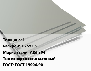 Лист нержавеющий 1 1.25х2.5 Сталь: AISI 304 Тип:матовый ГОСТ 19904-90