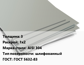 Лист нержавеющий 3 1х2 Сталь: AISI 304 Тип:шлифованный ГОСТ 5632-83, шт, х/к цена от 16 549 ₽ / т, где купить, условия доставки в Ярославле и Ярославской области