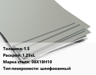 Лист нержавеющий 1.5 1.25хL Сталь: 08Х18Н10 Тип:шлифованный
